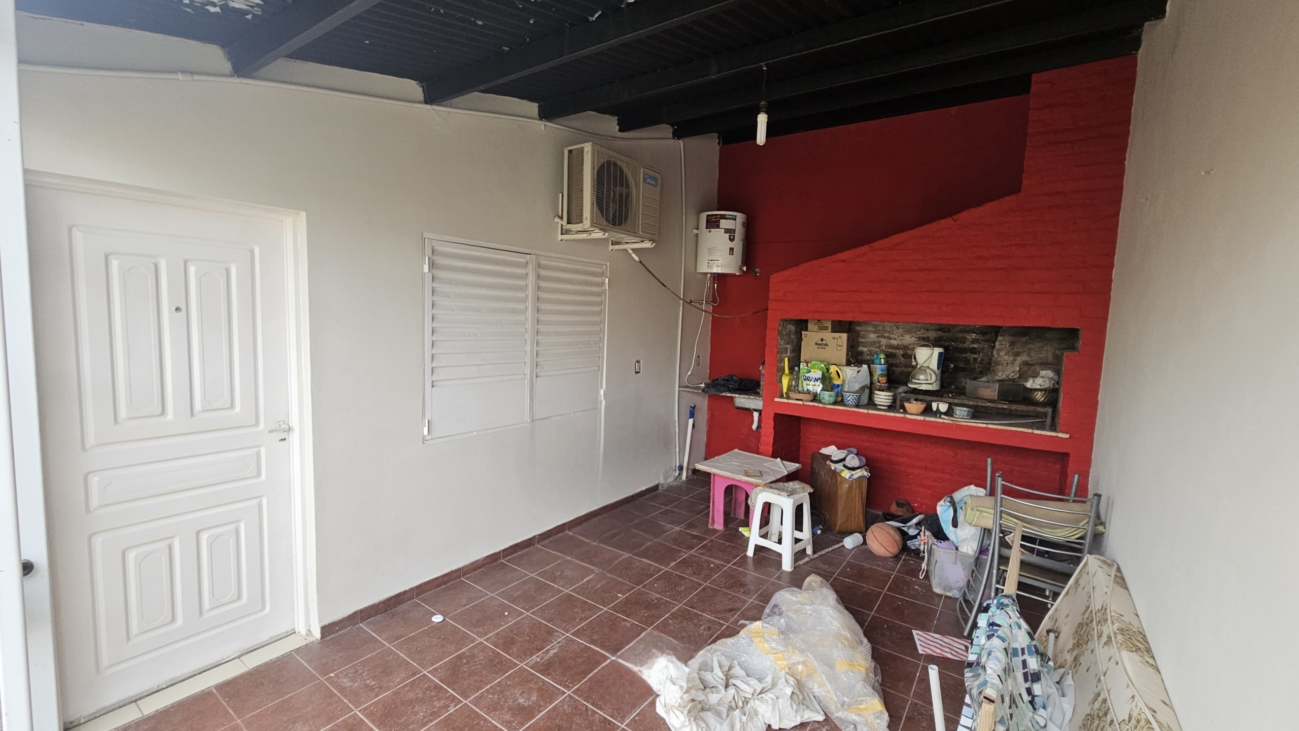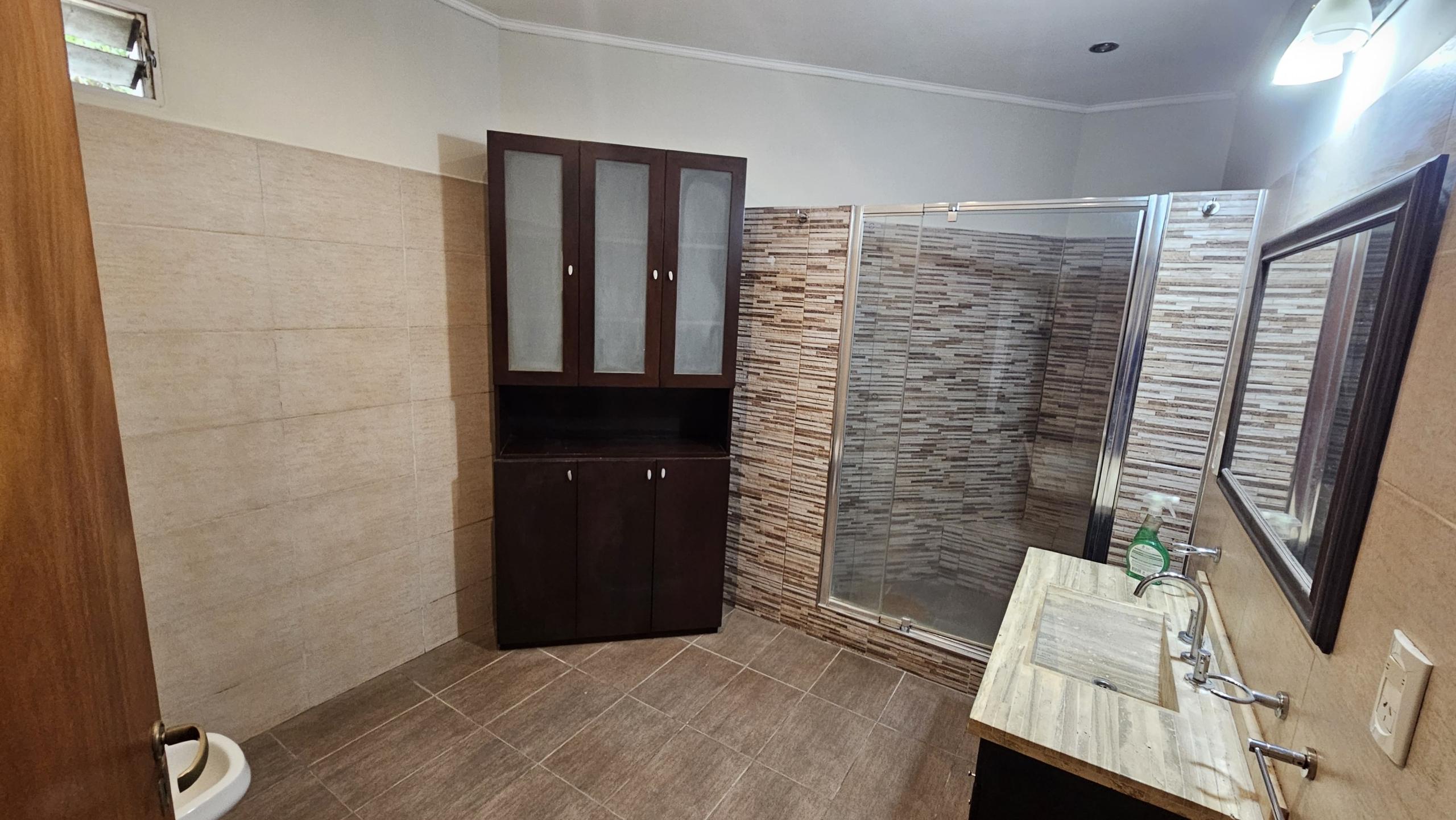 Quincho con parrilla y un baño.