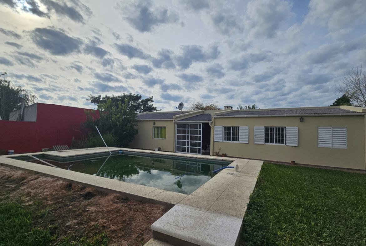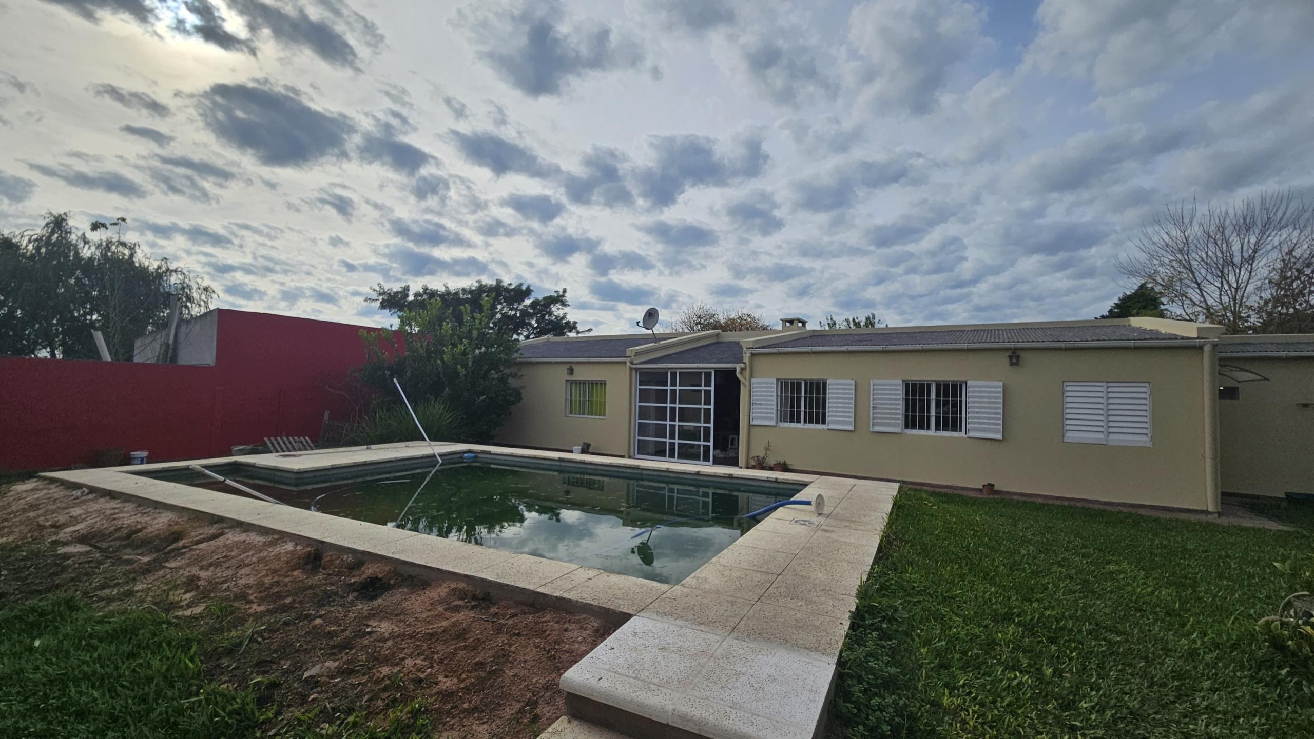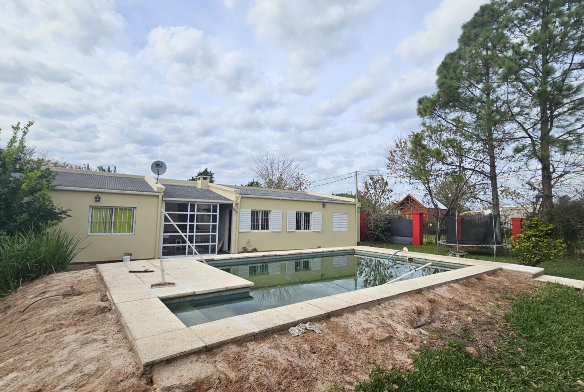 La propiedad cuenta con pileta climatizada, paneles solares y lavadero cubierto.