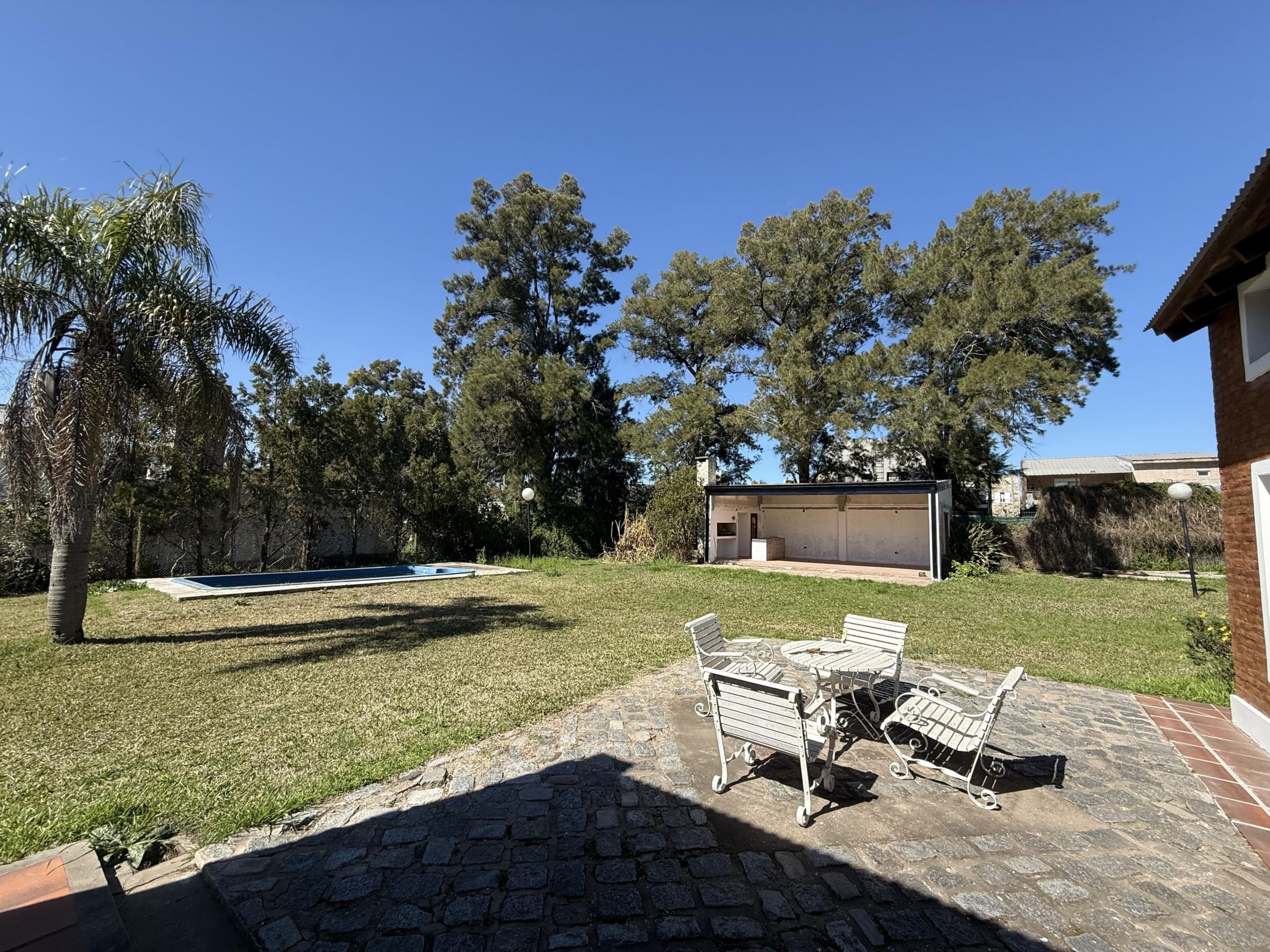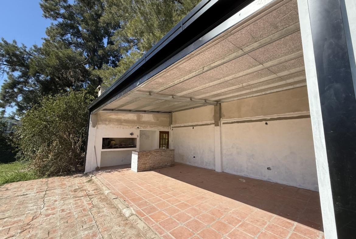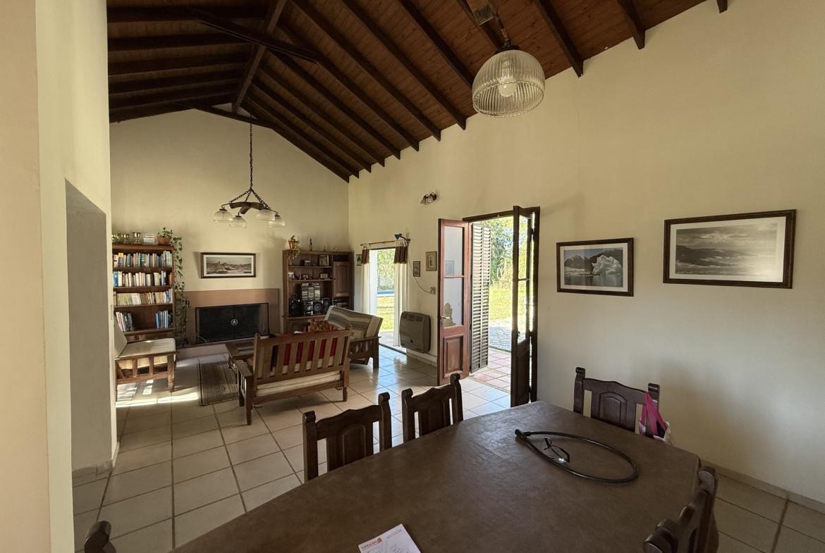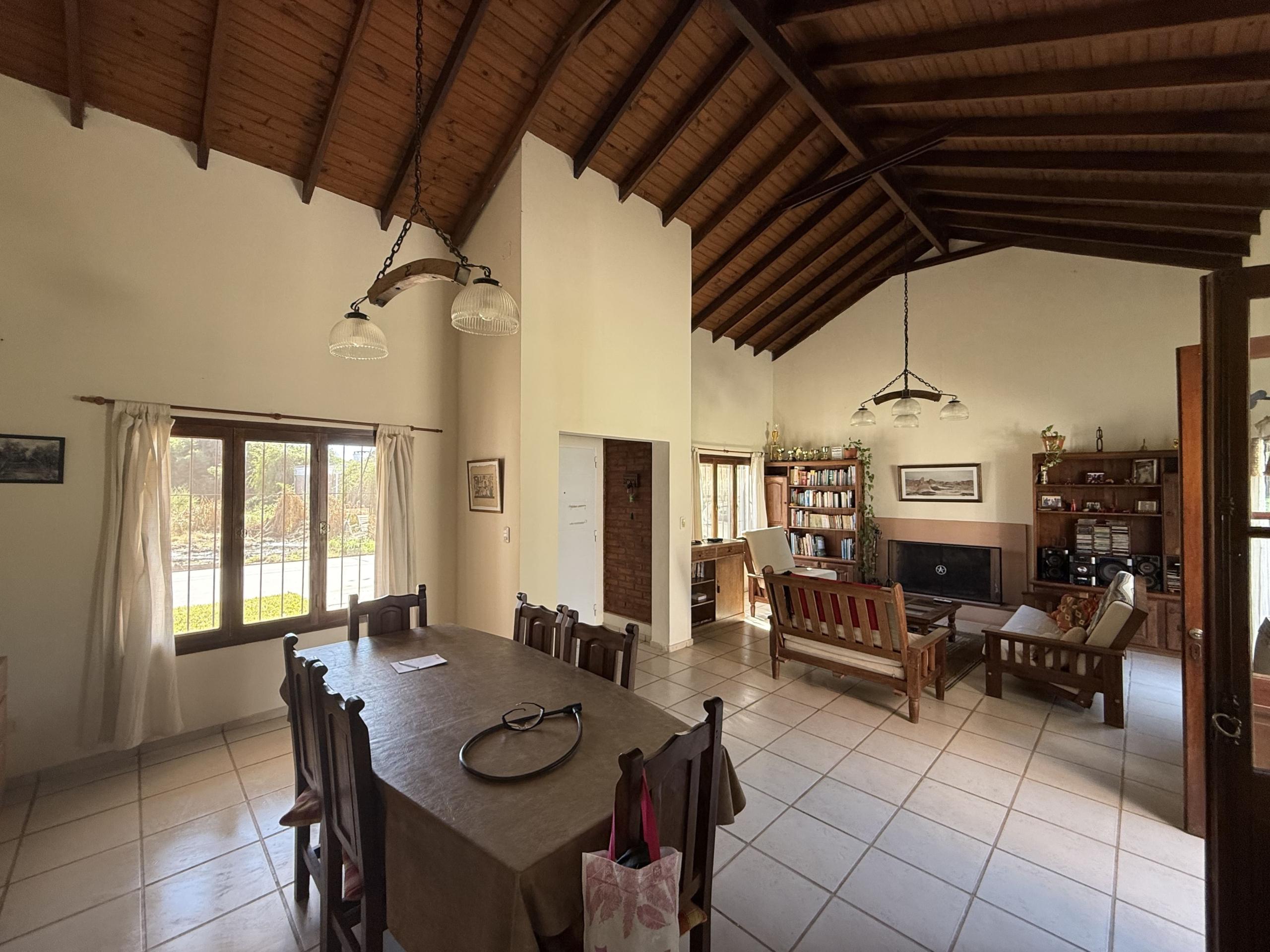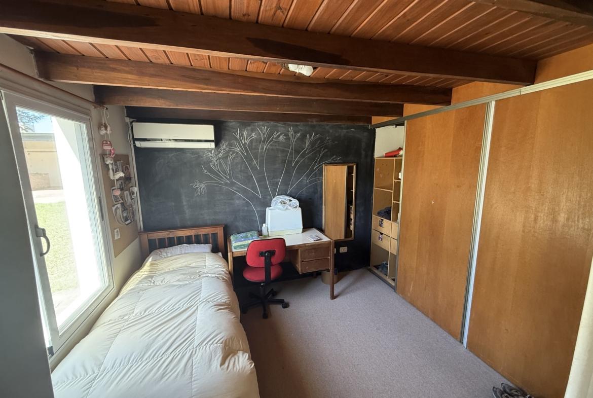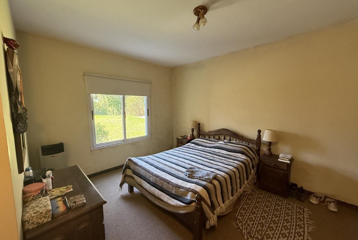 Compuesta por amplio living, cocina, comedor, baño completo, habitación en planta baja y segunda habitación tipo altillo en planta alta con baulera y armario, espacio para oficina, dormitorio principal con baño completo en suite, amplio patio con cesped, piscina, quincho semicubierto con parrilla y garage para dos vehículos.