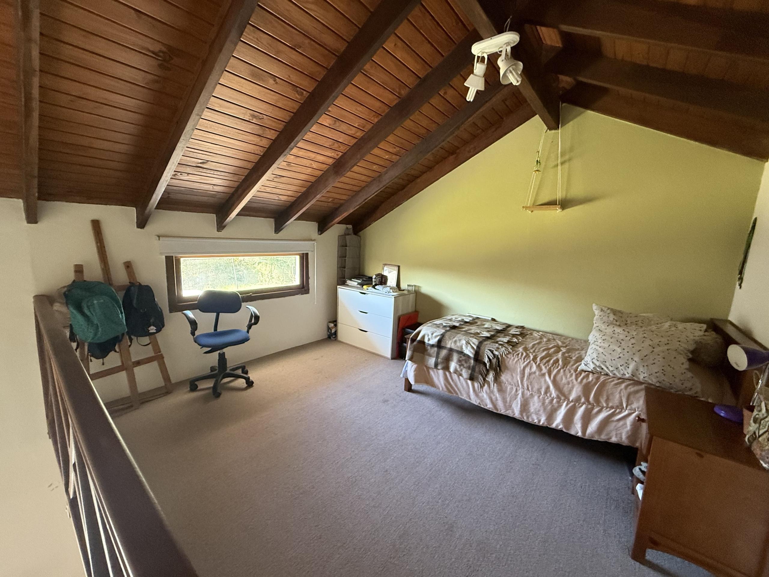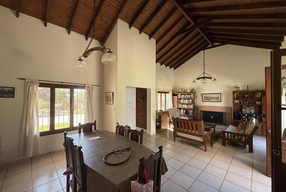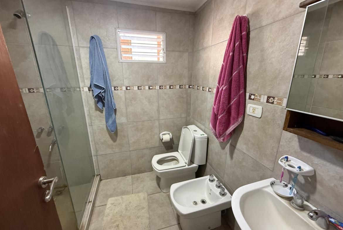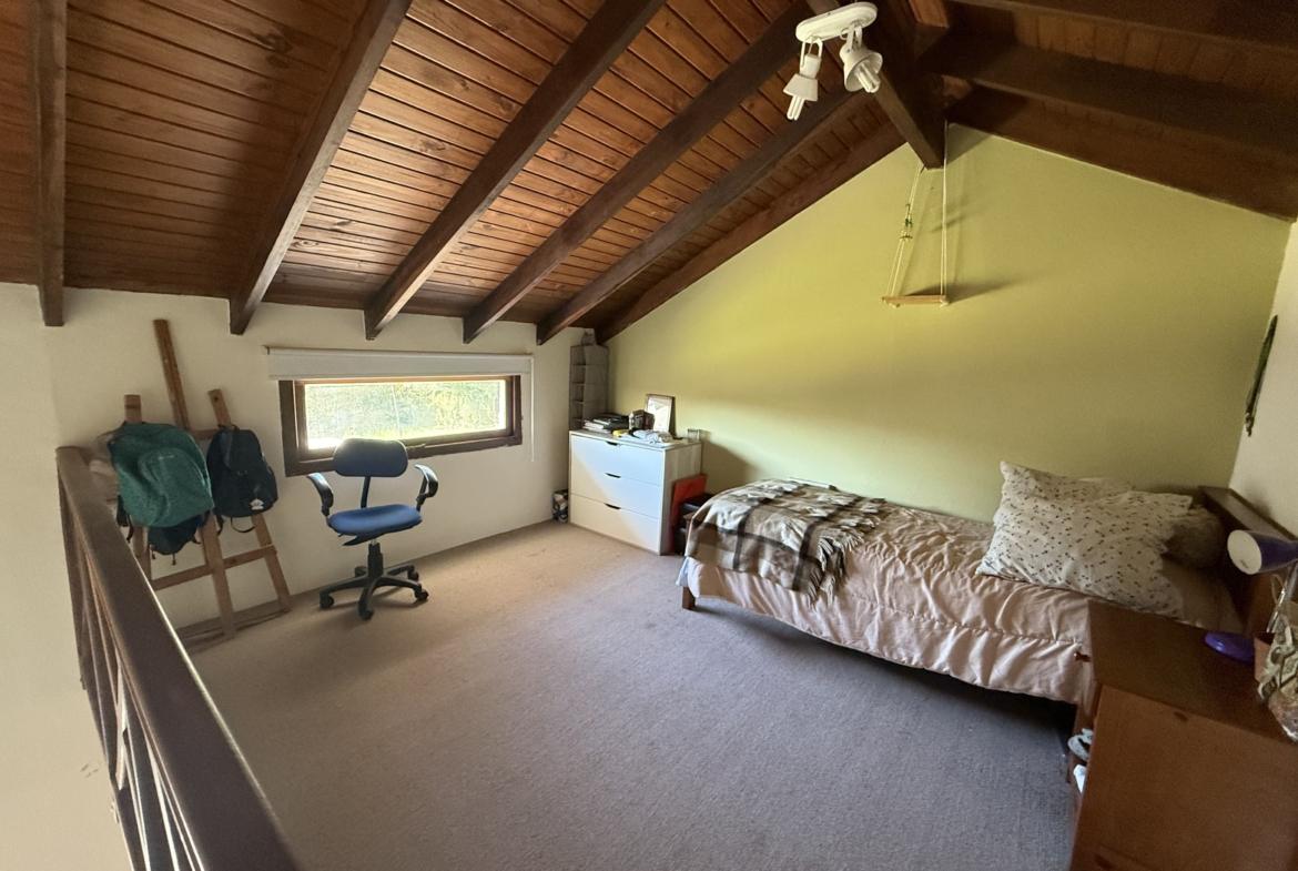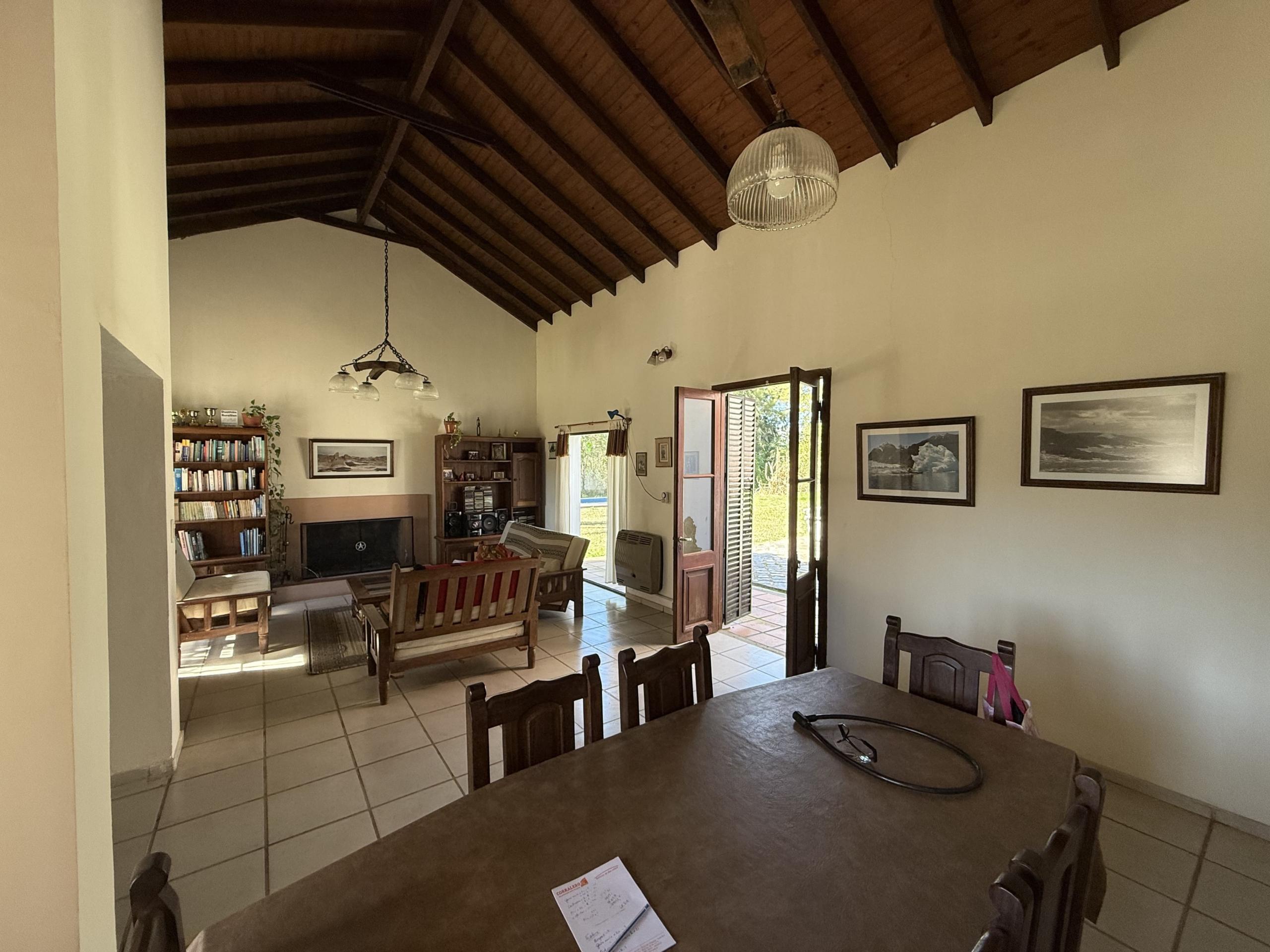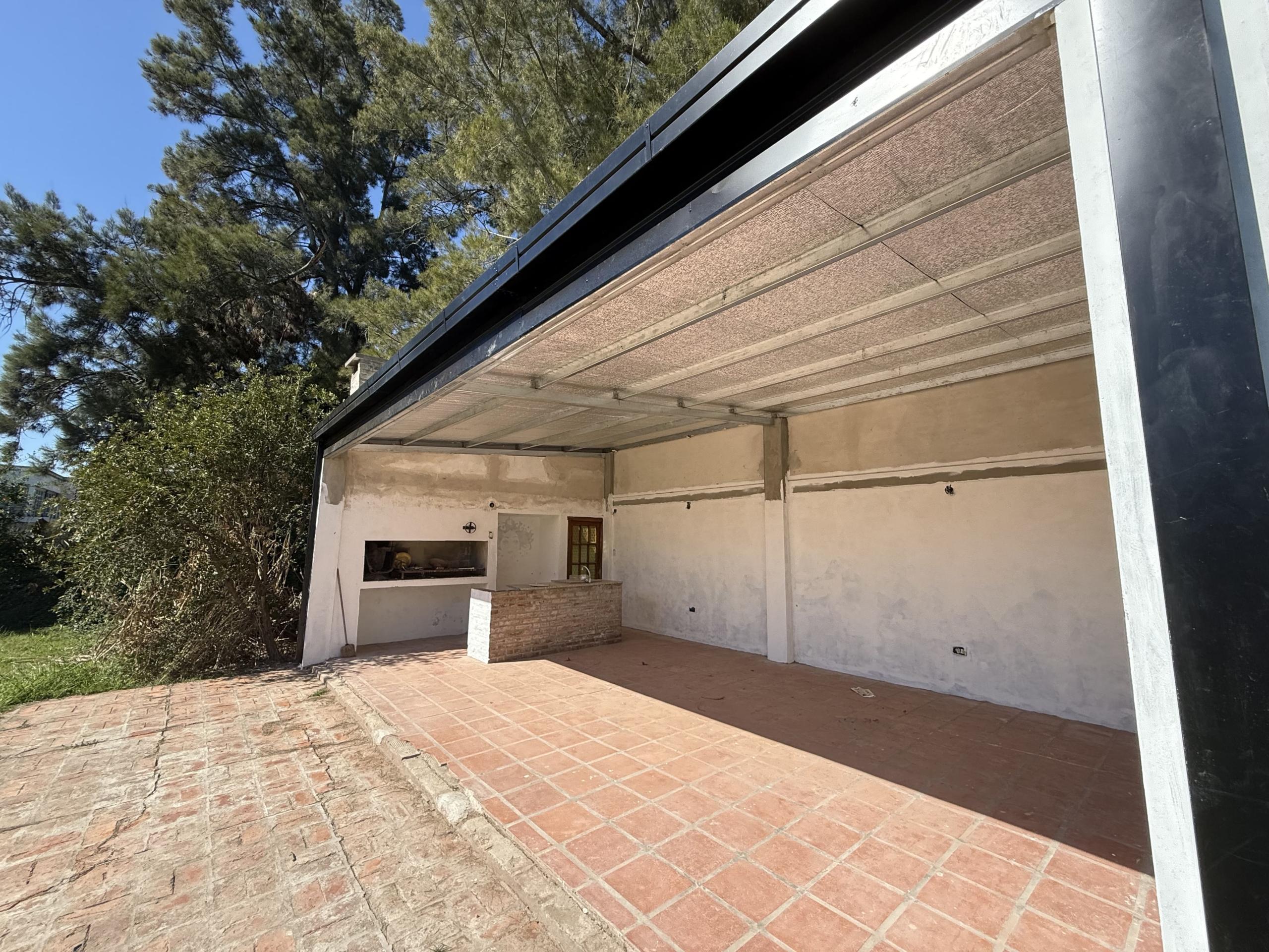 Compuesta por amplio living, cocina, comedor, baño completo, habitación en planta baja y segunda habitación tipo altillo en planta alta con baulera y armario, espacio para oficina, dormitorio principal con baño completo en suite, amplio patio con cesped, piscina, quincho semicubierto con parrilla y garage para dos vehículos.