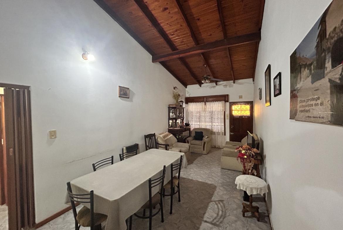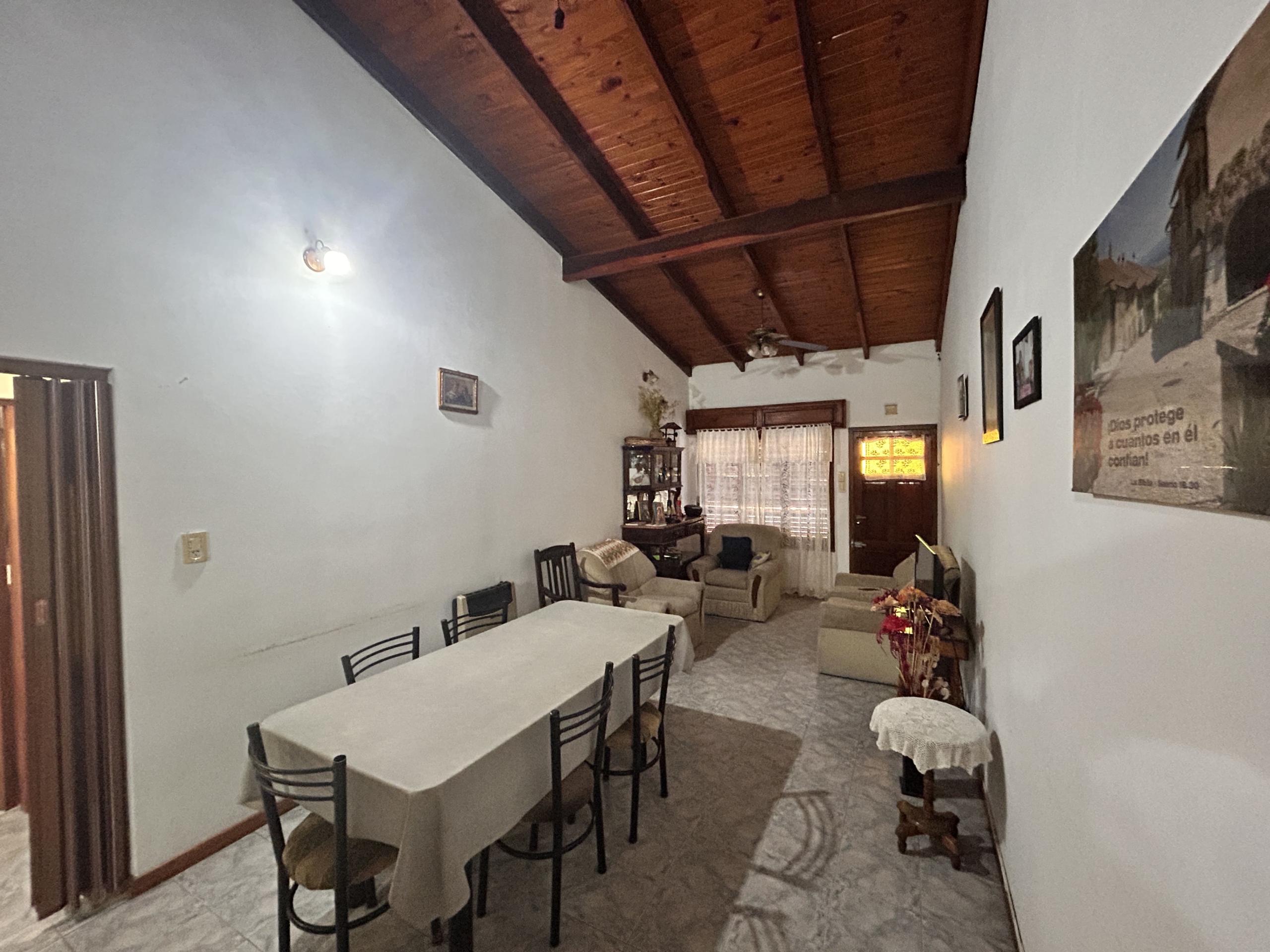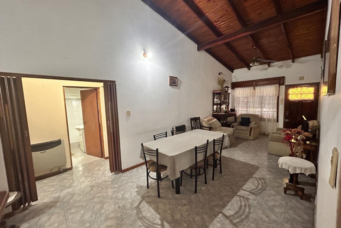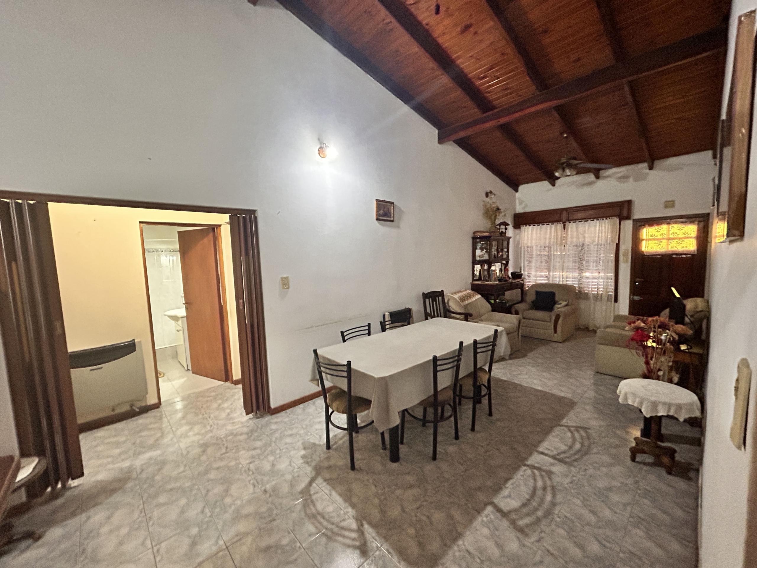 Compuesta por tres dormitorios, un baño, living, lavadero, cocina, comedor, amplio patio y garage doble.