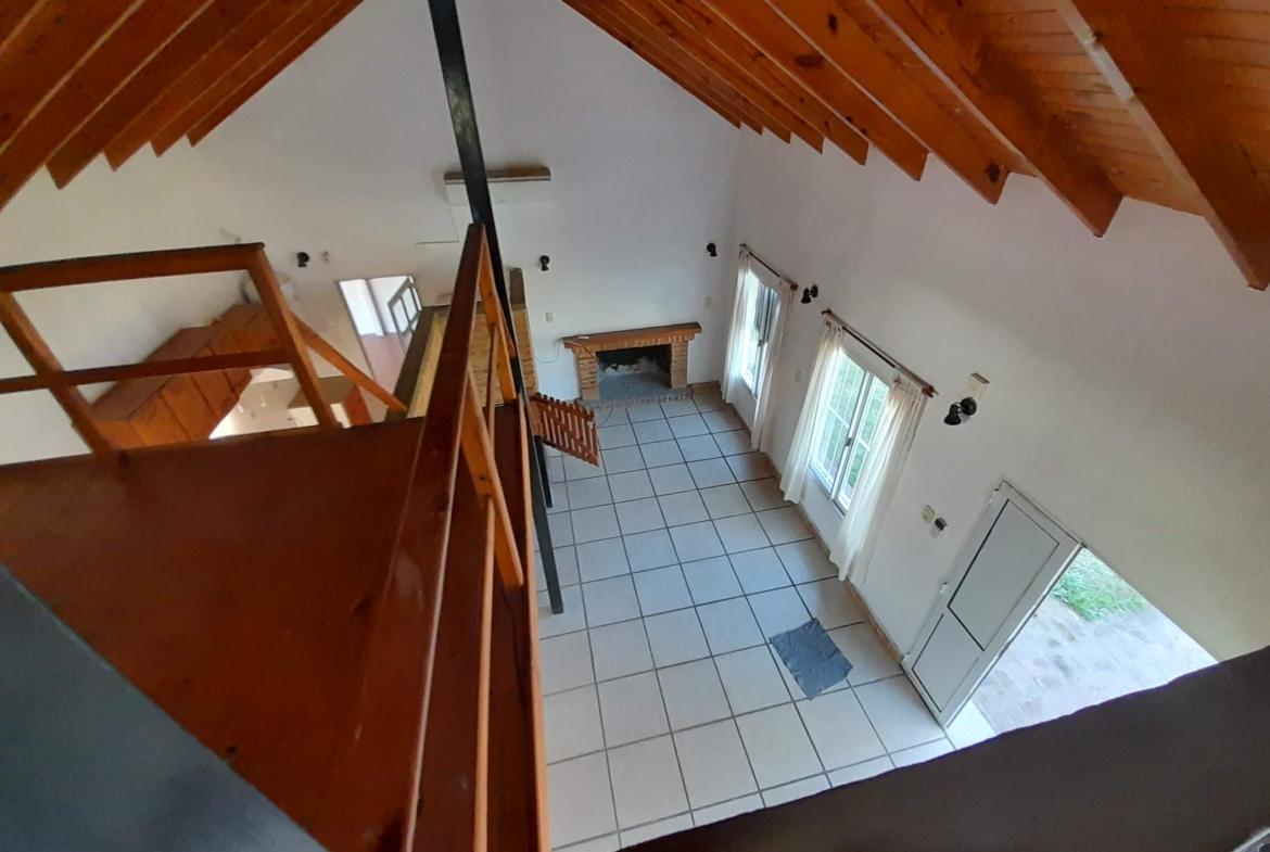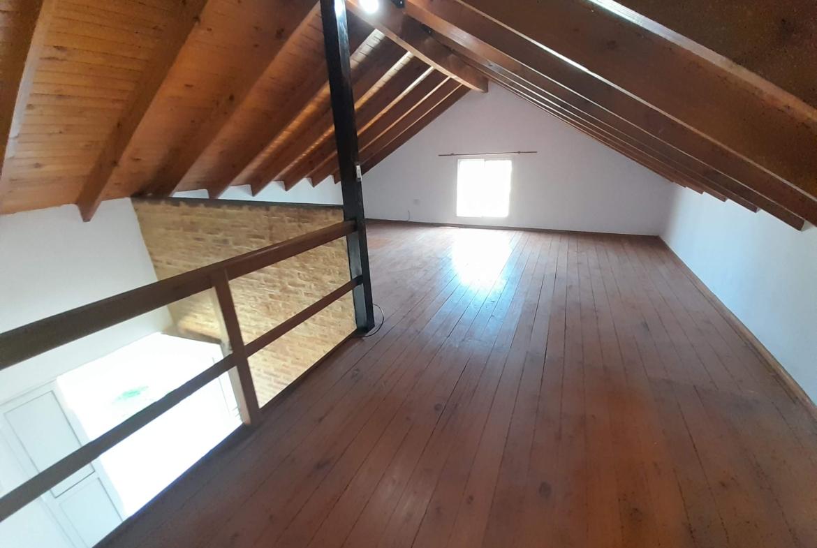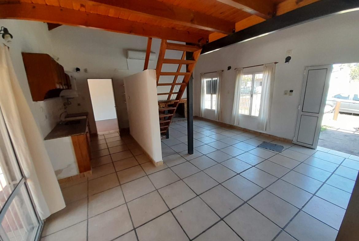 Casa compuesta por 2 habitaciones, 1 baño, ambiente en planta alta estudio/dormitorio, comedor, quincho, garage y jardín con piscina.