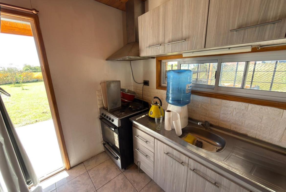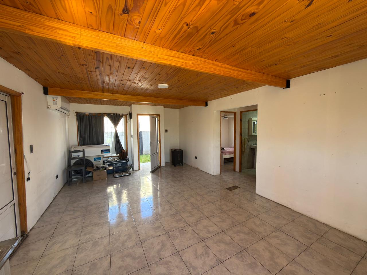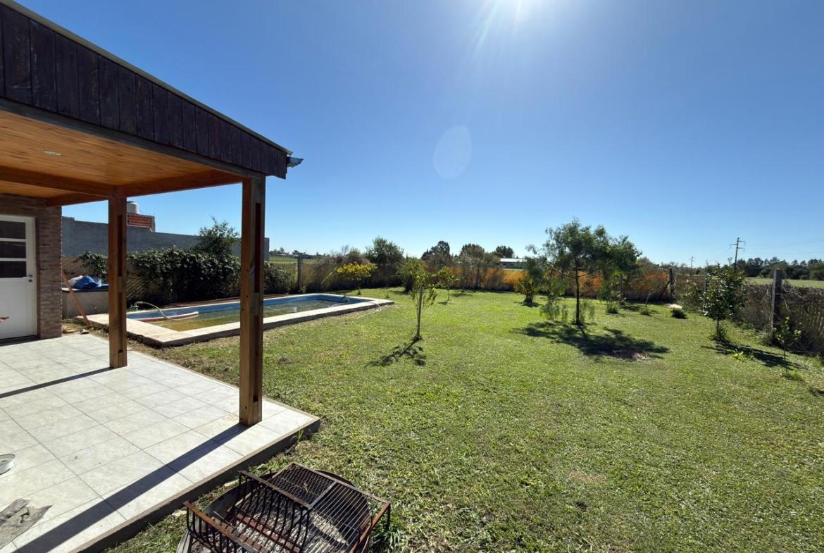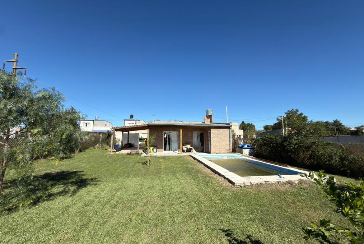 Compuesta por: Dos dormitorios (ambos con ventiladores), living cocina comedor (con aire frío – calor), un baño, lavadero, garage con portón, amplio jardín con piscina y galería semicubierta.