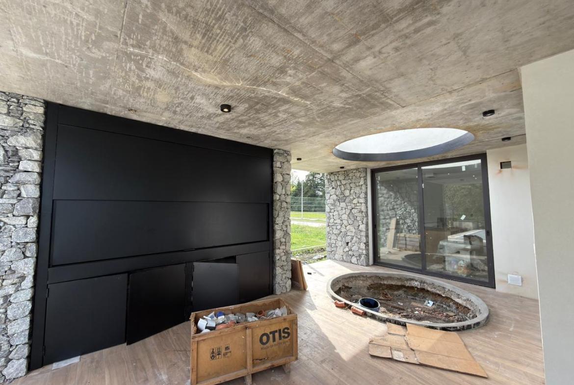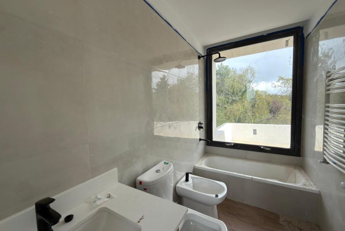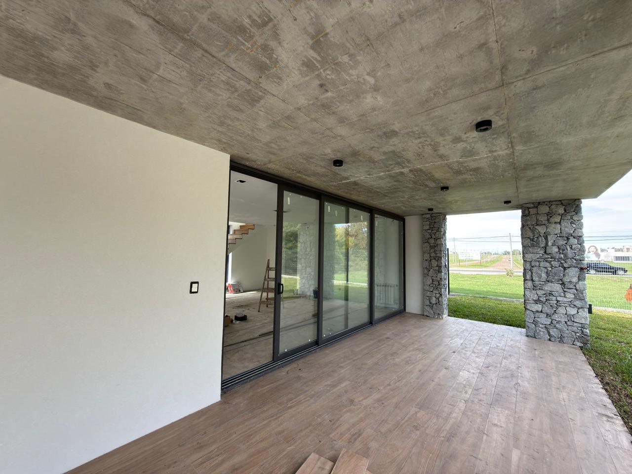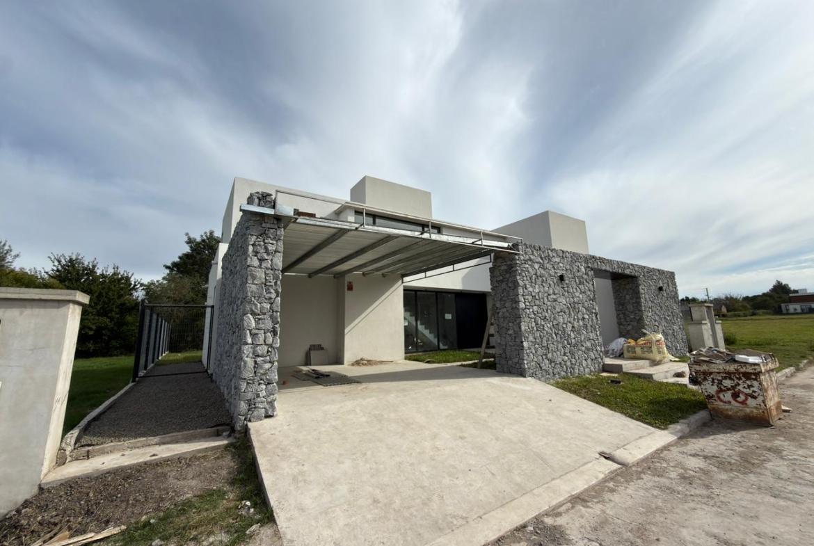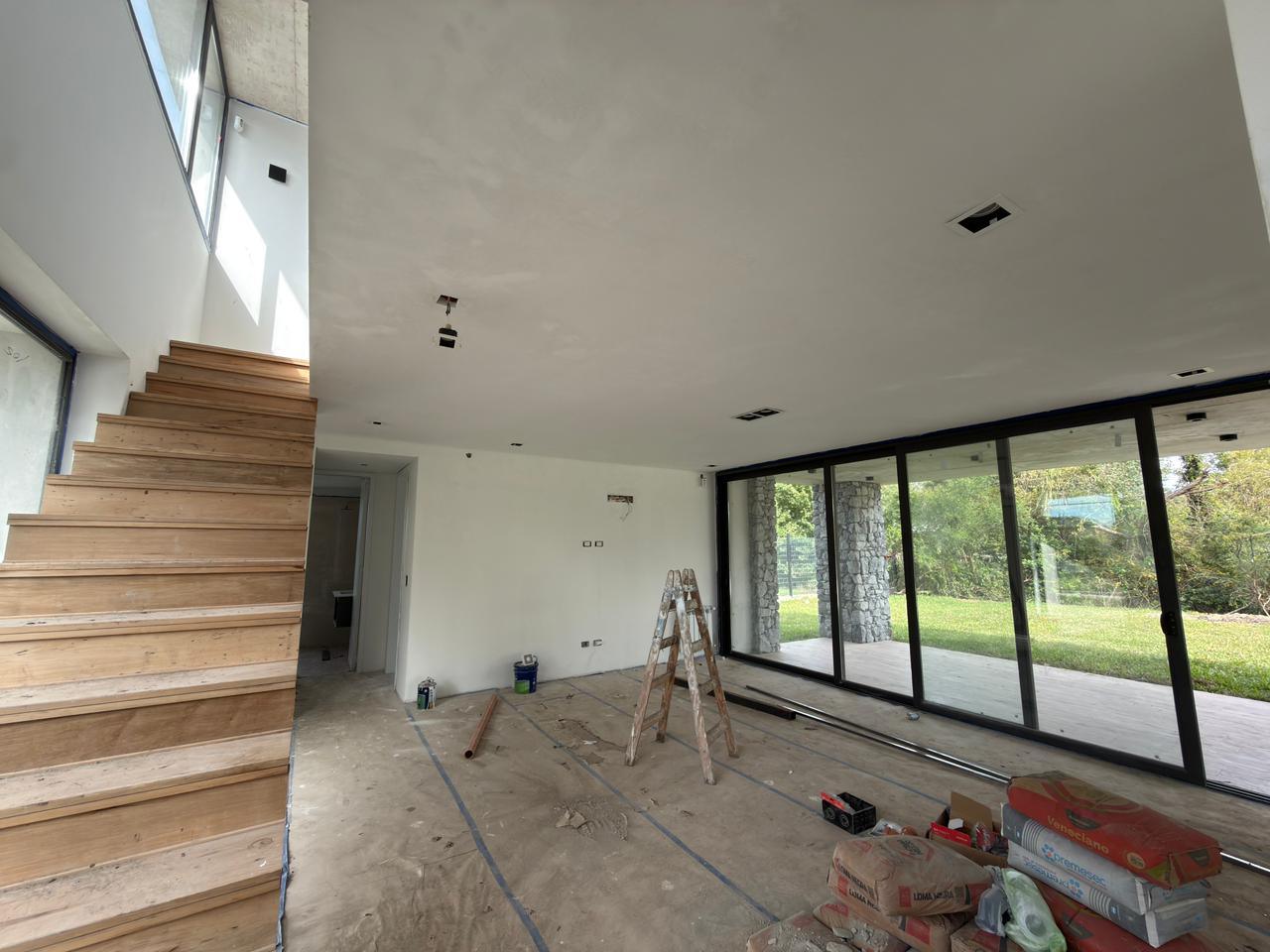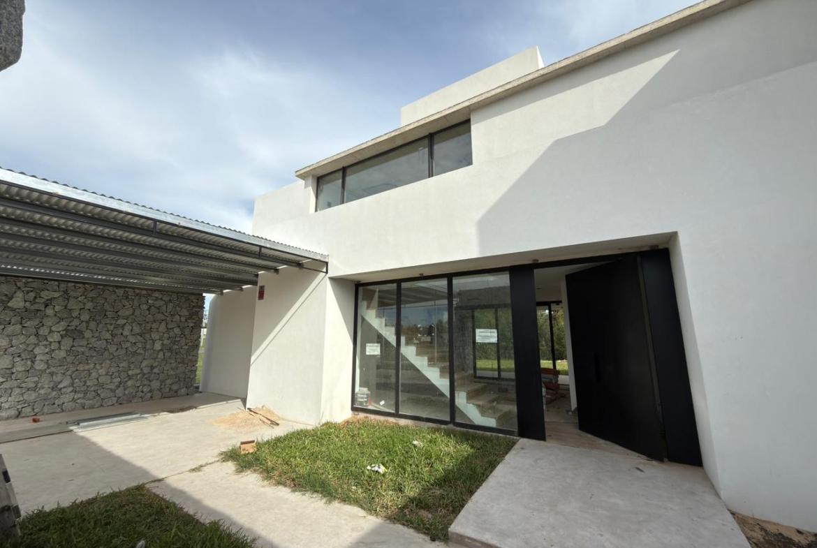 En planta baja: garage semicubierto, living comedor, cocina con isla, lavadero, patio interno, jardín amplio con piscina, galería semicubierta, parrilla, baño completo y habitación luminosa / Play room.